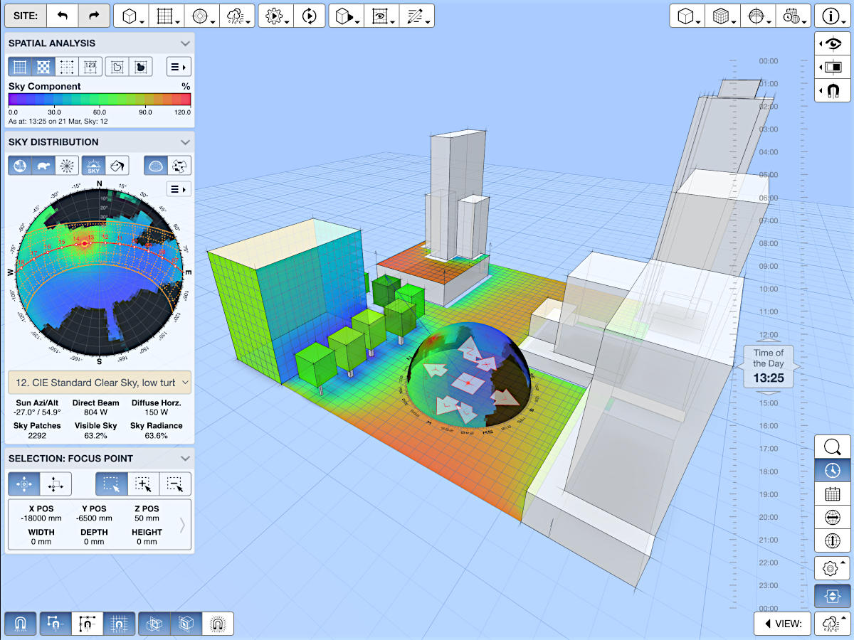 Builds on the daylight tool with snapping, editing, and experimental CSG modeling, plus support for multiple flat or volumetric analysis grids.